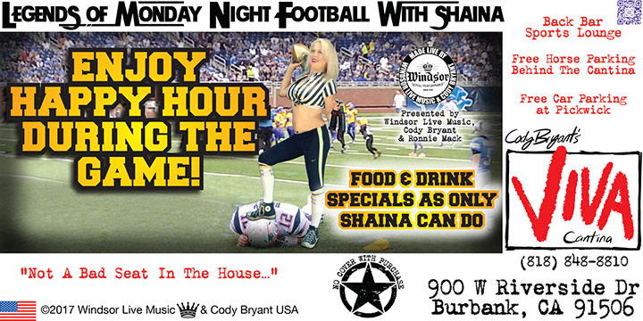 Live Music 7 Nights & 3 days a week...Two Stages...Two Bars...Three Patios...Three Dining Rooms...Free Horse Parking...Country Cody Bryant...Sage Heart & Soul Of Viva Cantina 1996-2017...Burbank...California....USA